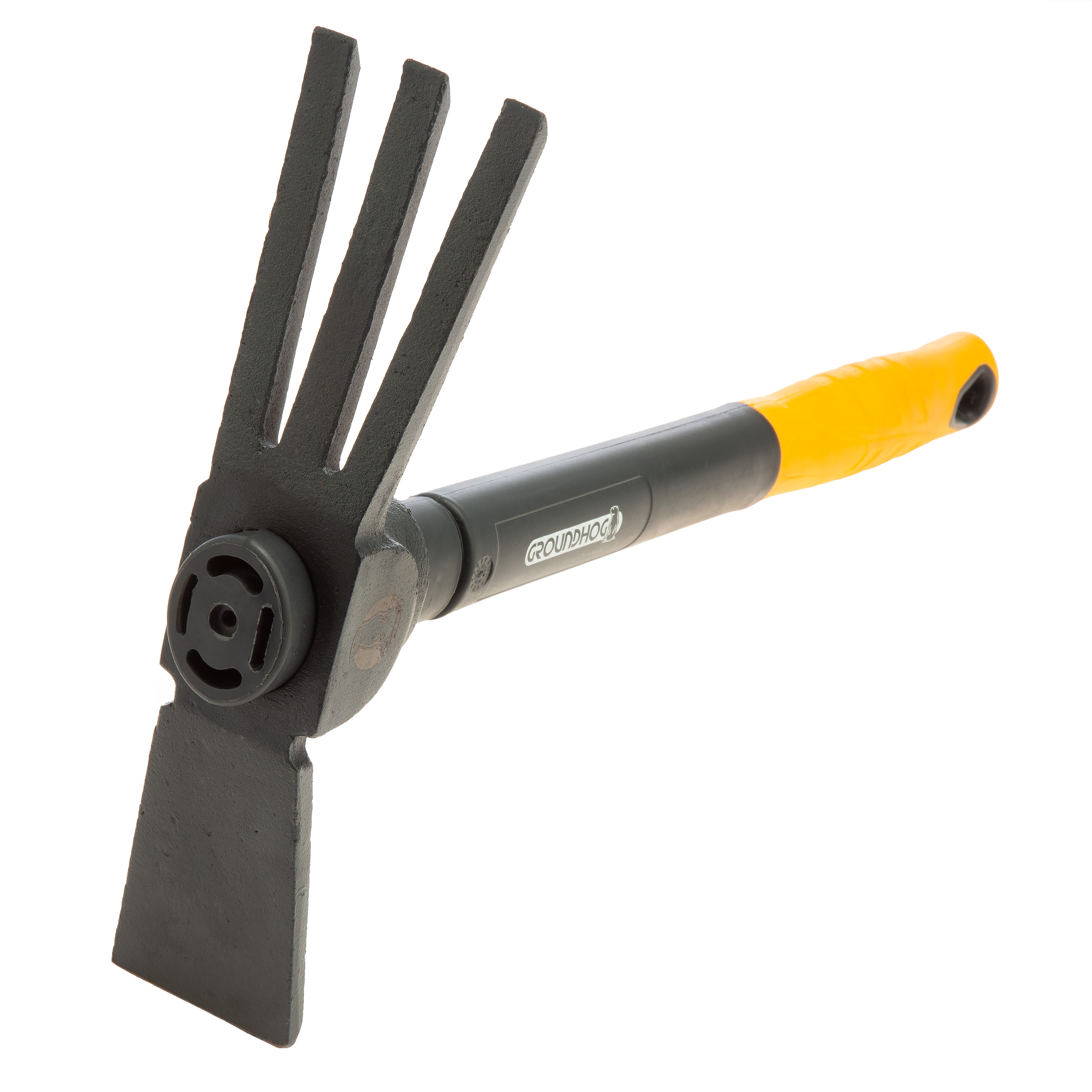 • Dual-Head Design: The Groundhog Tiller Mattock features a versatile dual-head design, combining a pick on one side and a blade on the other. This innovative configuration makes it the ideal tool for breaking up soil, digging, and cultivating with precision.