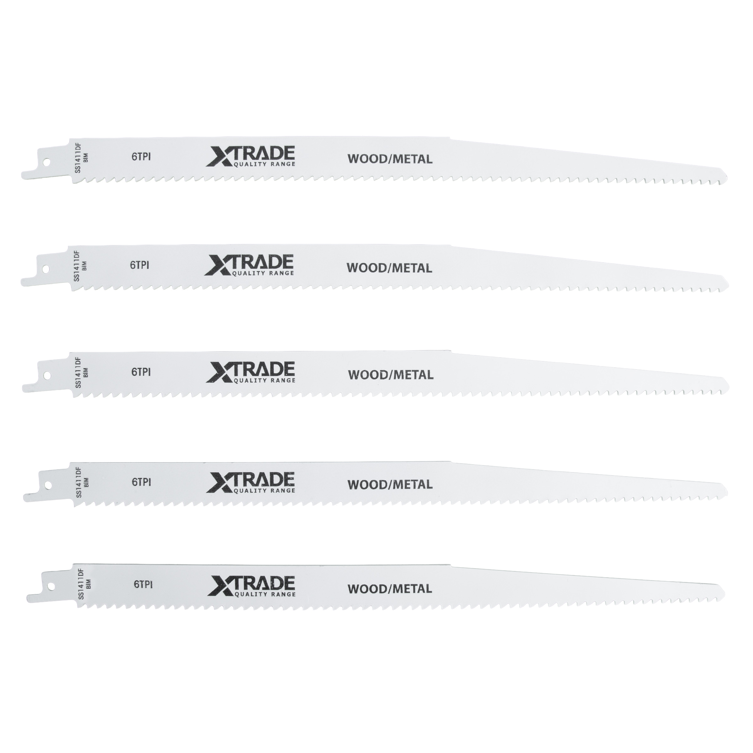 Power through tough demolition tasks with the XTrade S1411DF Reciprocating Saw Blades – 5 Pack, expertly engineered for fast, aggressive cuts in both wood and metal. These heavy-duty blades are your go-to solution for cutting through timber with embedded nails, metal pipes, sheet materials, and plastic. Whether you’re on-site or in the workshop, the S1411DF blades are designed to deliver long-lasting durability, high cutting performance, and total versatility.