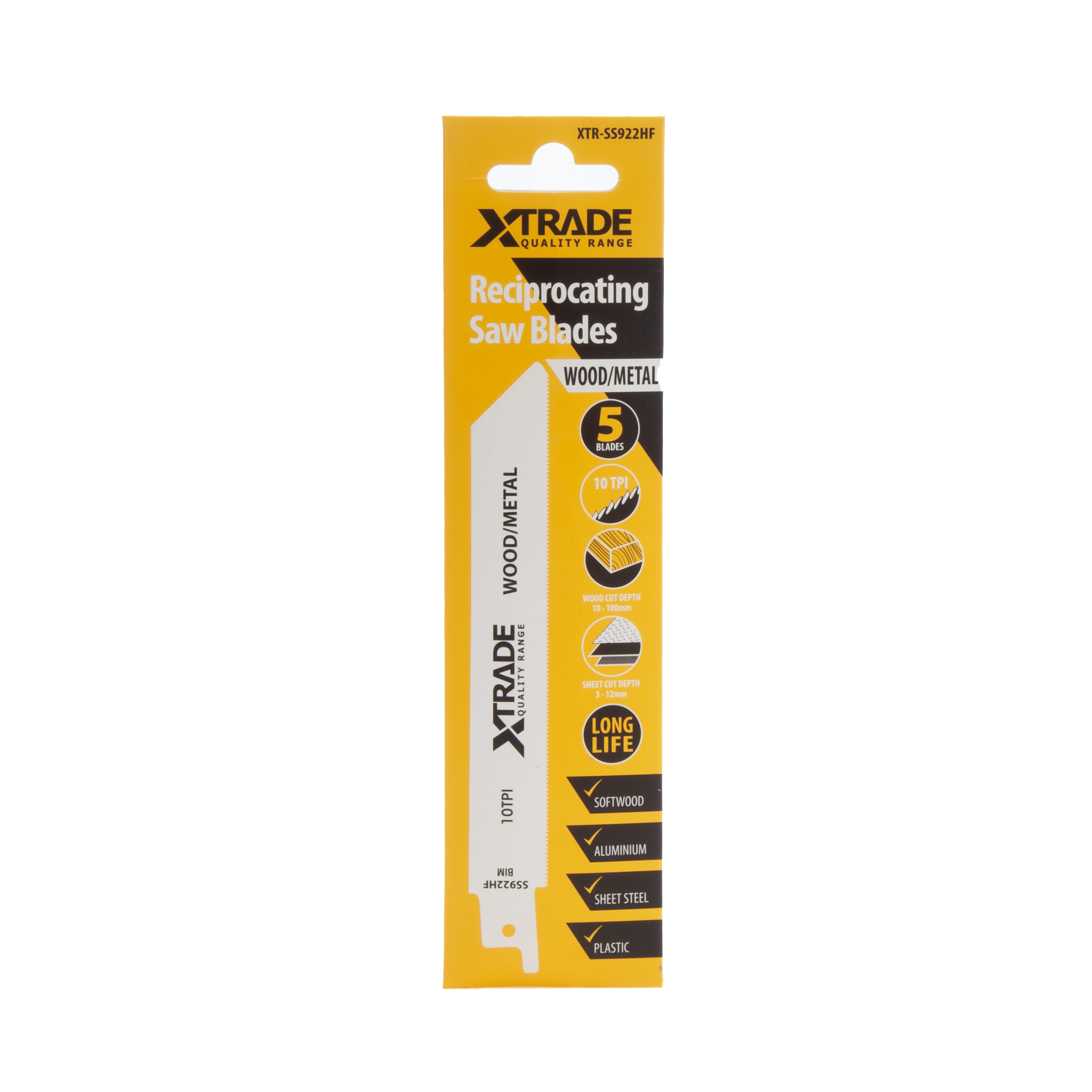 When your job demands versatility, reach for the XTrade S922HF Reciprocating Saw Blades – 5 Pack. Built to cut through both wood and metal with ease, these high-performance blades are ideal for professionals who need a tough, multi-purpose solution. Whether you’re trimming timber with nails, slicing through conduit, or taking down stud walls, the S922HF blades deliver clean, controlled cuts and long-lasting durability in one dependable package.